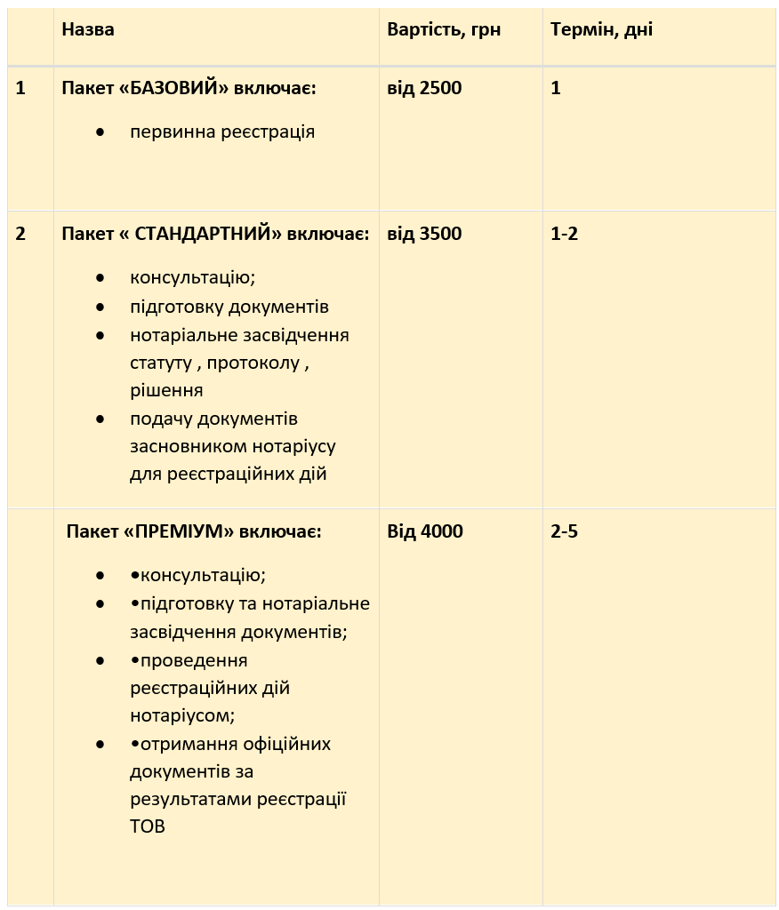 Реєстрація ТОВ у Києві